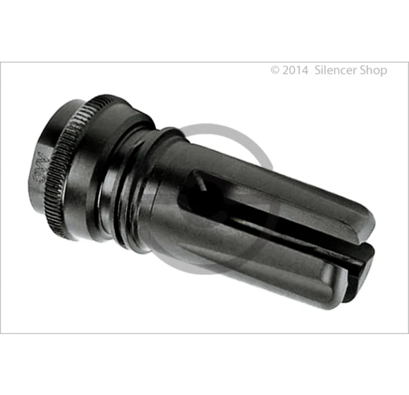 The BLACKOUT flash suppressor is the most efficient design available. The proprietary features eliminate muzzle flash, even on CQB-length barrels. The BLACKOUT is inherently stronger and more impact resistant than four prong designs, while not being subject to the rapid erosion of closed-ended units. A high strength corrosion-resistant aerospace alloy, and ultra-hard SCARmor finish provide the highest level of durability. Military tested and selected.