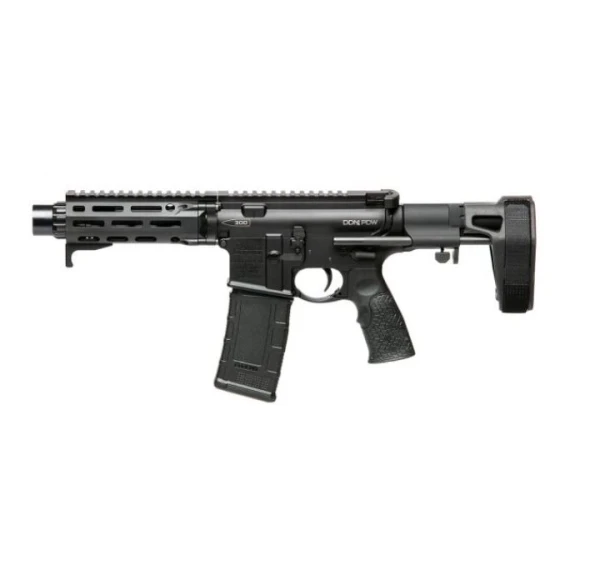 The DDM4 PDW features an M-LOK mounting system and SLR M-LOK MOD2 handstop for the perfect safeguard on a shorter barrel rifle. Additionally, the 1:7 barrel twist is great for stabilizing subsonic ammo, meaning throwing a silencer on the end would make for the ultimate quiet compact firearm. Offering maneuverability at 20.75 inches and an ambidextrous charging handle for left- and right-handed shooters, this rifle is equipped to take the heat without compromising reliability in either its suppressed or unsuppressed configurations. Finally, the Maxim Defense CQB Pistol Brace coupled with the DDM4 PDW allows the ability to comfortably shoot, reliably and accurately. This ultra-compact platform is ready to roll right out of the box and into action.