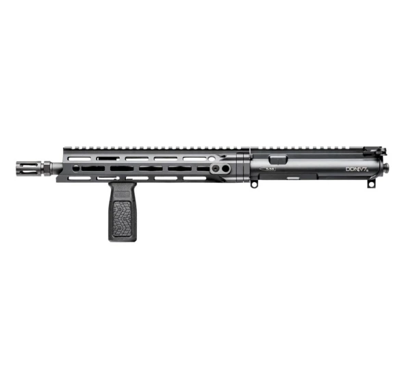 The Daniel Defense DDM4 V7S AR15 style Upper Receiver Group features the MFR 10.0 M-LOK rail and is built around a free-floating, Cold Hammer Forged 11.5 inch barrel. The V7 S delivers optimal maneuverability, reliability, accuracy, and terminal ballistics using a wide variety of ammunition. Its carbine length gas system provides smooth and reliable cycling under harsh conditions and reduces perceived recoil. With the M-LOK attachment points that run along 7 positions and an uninterrupted 1913 Picatinny rail on top, the V7S has plenty of room for sights, optics, and accessories the user may require. Pairing an 11.5 inch barrel and the MFR Rail also ensures compatibility with a wide variety of muzzle devices and sound suppressors. The independently ambi GRIP-N-RIP Charging Handle accommodates left- and right-handed shooters. All Daniel Defense complete upper receiver groups come standard with an M16 profile bolt carrier group.