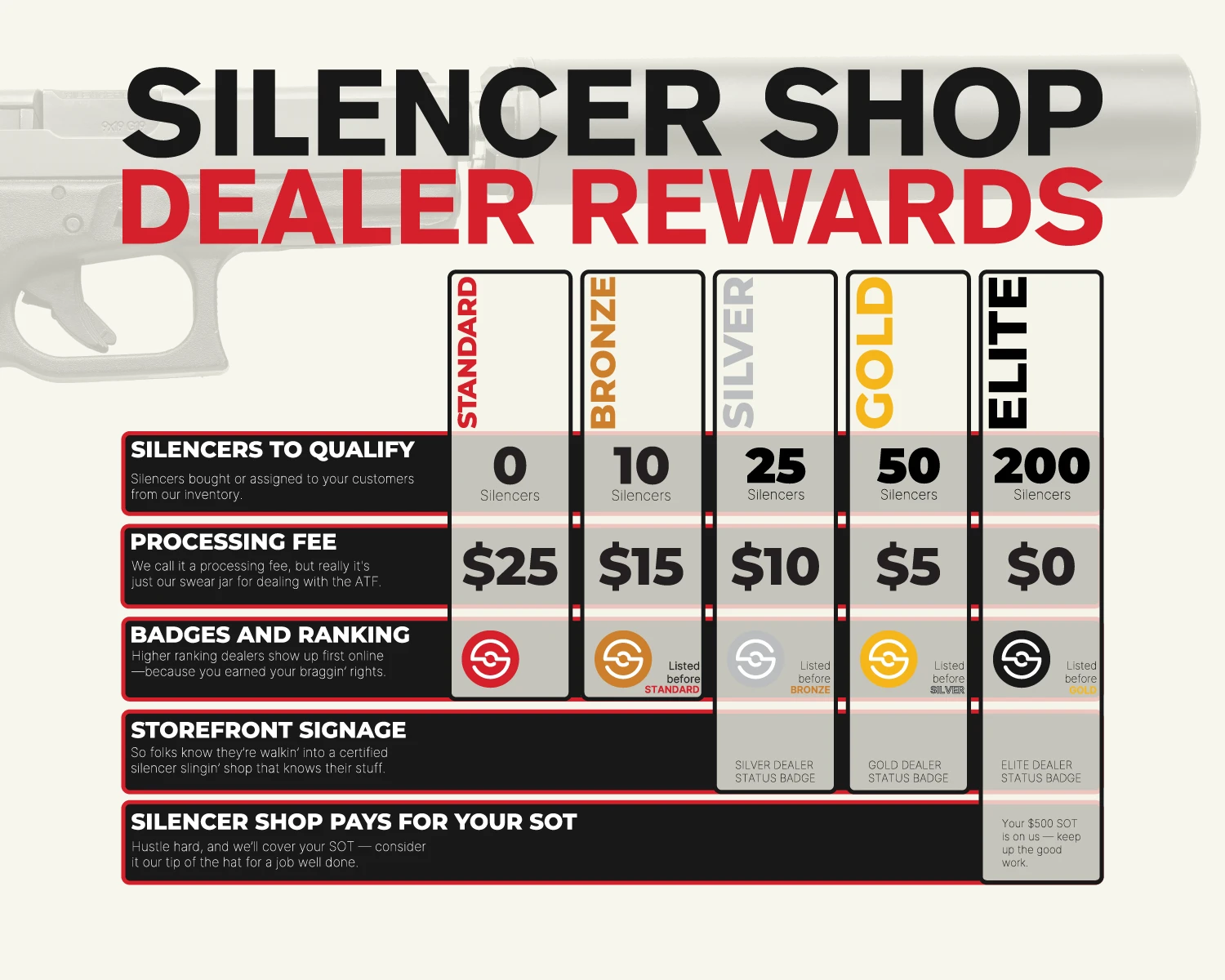 Silencer Shop rewards dealers who use Silencer Shop as their one-stop shop for all things silencers.