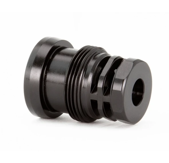 Constructed of 17-4 PH stainless steel, the Taper Mount EZ Brake features 6 radial slots which provides effective recoil mitigation. The Taper Mount EZ brake weighs 2.0 ounces, making it one of the lightest mounts available for the Taper Mount Interface. The lighter weight reduces suppressor system weight while making the host firearm barrel lighter and more responsive to the shooter. The EZ Brake does not require timing and will interface with a 13/16" standard socket wrench for installation.