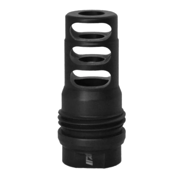 Muzzle brakes designed to work with the Rugged Dual Taper Lock silencers (Surge, Razor, Micro30, etc). The 5.56 comes in a 2-port configuration, whereas the 7.62 brake is a 3-port design.
